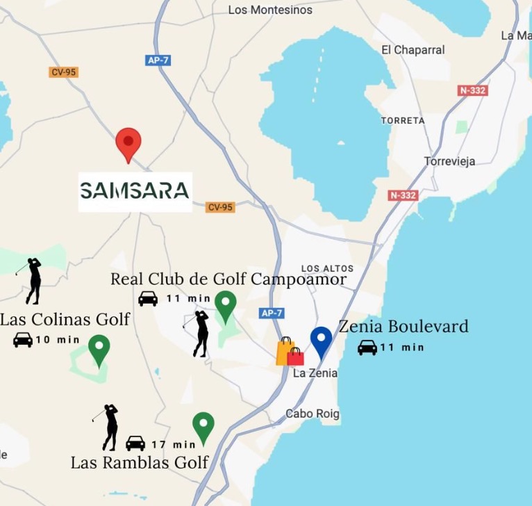 In the center of Orihuela Costa, in the province of Alicante, you'll find the Samsara Apartment bungalow project. Nearby districts include Villamartin, Campoamor, and Cabo Roig. On the southern side of the Costa Blanca lies the Playa Flamenca, home of La Zenia, the region's most renowned retail center, and Orihuela Costa. On the northern side lies the Mar Menor and the world-famous La Manga. Many golfers come to this area each year to play on the many courses that are available. The area's microclimate, which boasts 300 sunny days a year, is another selling point. As an added bonus, most of the region's stores, bars, and restaurants are open all year round, and the prices here are typically lower than those in other coastal sections of Spain.